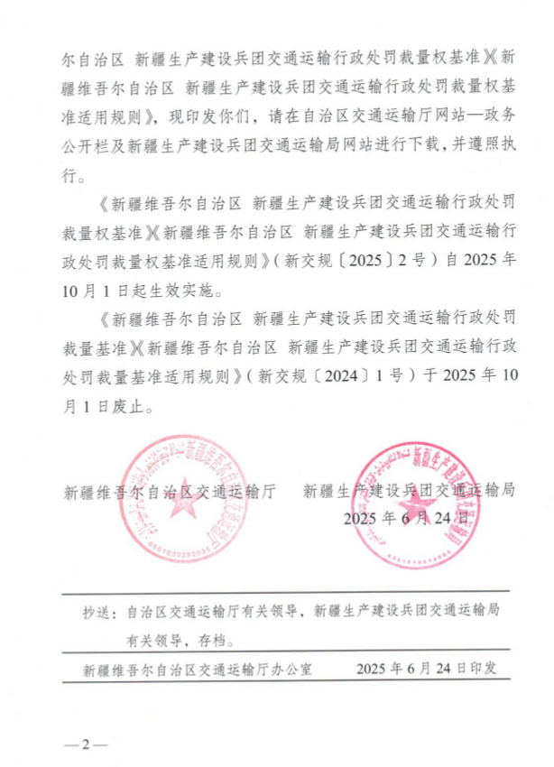 2.新疆维吾尔自治区 新疆生产建设兵团交通运输行政处罚裁量基准权适用规则