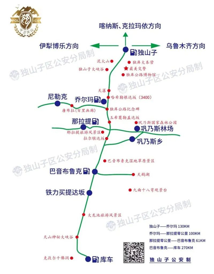 独库公路于1983年正式通车,全长561公里,沿途经过峡谷、冰川、湖泊、草原、森林、戈壁等多种景观,其中有280多公里路段在海拔2000米以上。受气候等因素影响,独库公路每年仅可通车4-5个月。