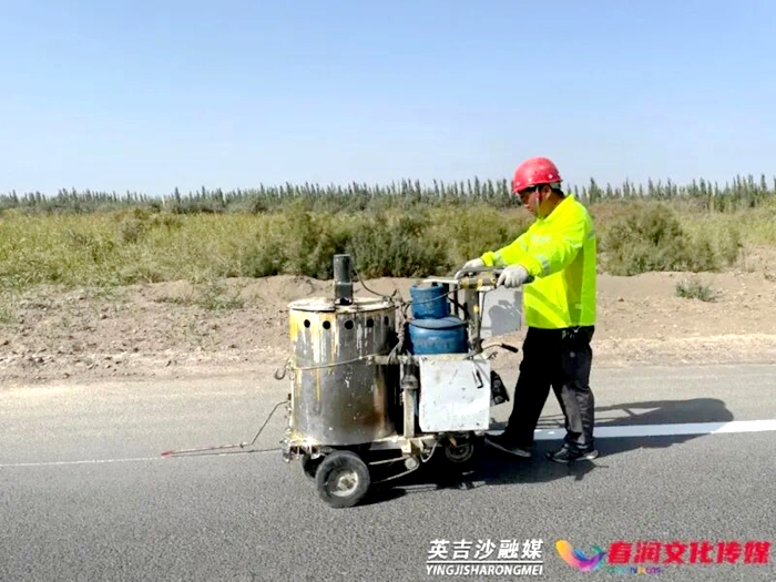 “我们投入了两台热熔划线车,每天可完成10公里的标线施工任务。”工程技术部技术员王畅介绍:“截至目前,已完成本路段左右两侧30公里的标线施工,全程严格按照设计规范对原材料进行检测,高效推进工程收尾工作。”