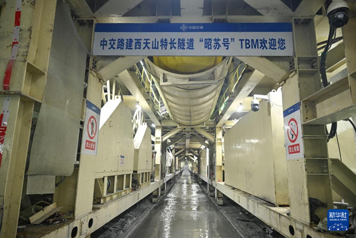 这是10月5日拍摄的昭温公路西天山特长隧道平导洞内景。新华社记者 胡虎虎 摄