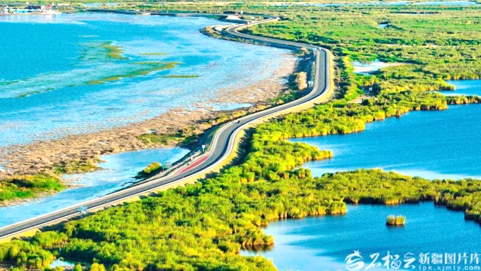驾车行驶在“一侧湖水一侧沙”的博湖县博斯腾湖环湖公路上,沿途可欣赏清澈湖水、沙漠戈壁、湿地芦苇和候鸟翔集的美丽画卷。公路串联起大河口、莲海世界、白鹭洲、海心山、月牙湾、金沙滩等景点,形成了一条集生态观光、人文体验和休闲度假于一体的旅游长廊,大大提升了当地旅游的整体竞争力。
