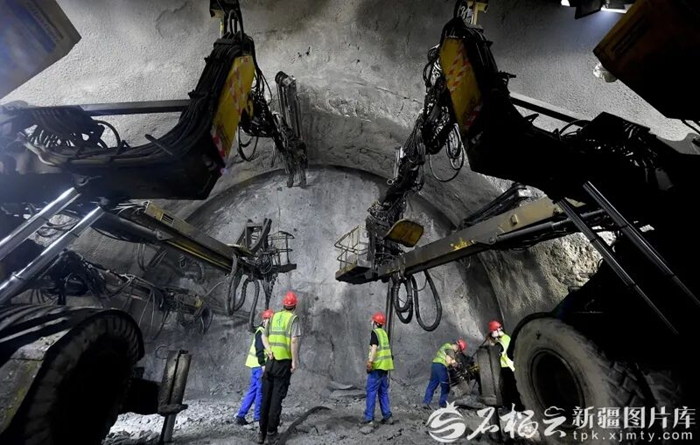 中交第二公路勘察设计研究院有限公司天山胜利隧道设计负责人彭文波介绍,隧道采用“主洞+服务隧道”设计,即在两个主洞之间增设一条服务隧道,服务隧道使用硬岩掘进机(TBM)领先掘进施工,进而为左右主洞增加工作面,横向将整条隧道“切割”成多个短隧道滚动施工,实现“长隧短打”,工期由常规“两端掘进”施工的10年缩短至4年多。