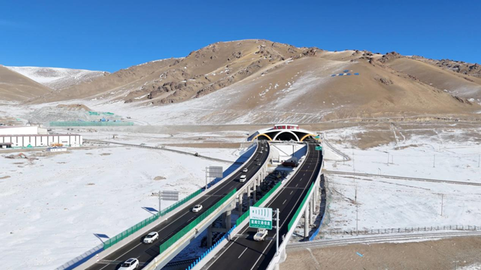 冬日的天山脚下,G0711乌尉高速天山胜利隧道口车流不息。
