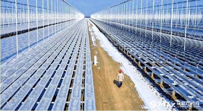 1月12日,工作人员在位于哈密市伊州区的大唐石城子100万千瓦“光热+光伏”一体化清洁能源示范项目现场巡查。目前,该项目90万千瓦光伏部分已并网发电,10万千瓦光热部分进入攻坚阶段,不久将实现全面投产。石榴云/新疆日报记者 蔡增乐摄