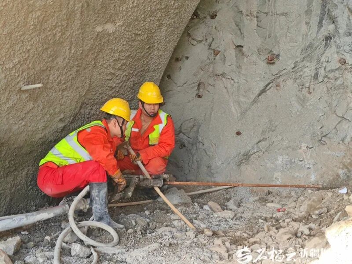 G217莎车至塔什库尔干公路建设项目(简称“莎塔公路项目”)第三标段錾高隧道进口端,4名施工人员手持气腿式凿岩机,稳稳抵在岩壁上,伴随着“突突突”的声响,岩壁上很快出现一个个小洞,为后续爆破作业做好准备。
