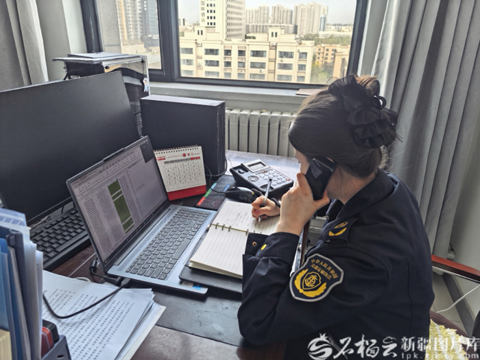 执法人员接听司机诉求电话(资料图)。图/巴州交通运输综合行政执法局提供
