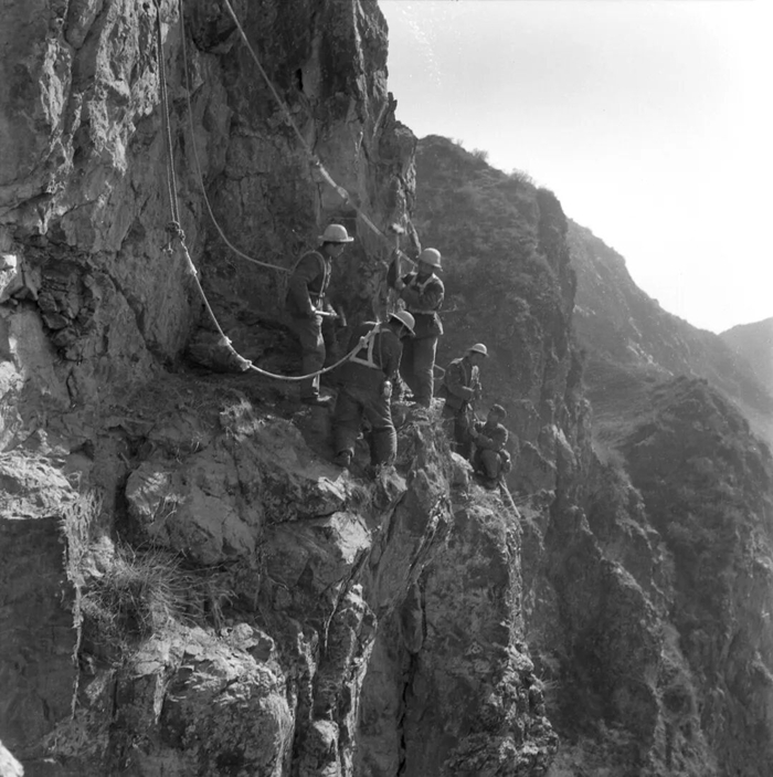 那是一个用血肉之躯对抗冰川与裂谷的年代。零下三十多度的雪域达坂上,战士们匍匐在永冻层上,用胸膛的温度融化冰土,用铁镐一寸寸凿开天山坚硬的沉默。寒风中,镐尖与冻土撞击的火星,是这片白色荒漠里唯一的光。在“老虎口”悬崖段,官兵们腰系绳索悬于百米高空,像风中的草籽贴在绝壁上。每一次锤击都震落簌簌碎石,轰鸣声滚入深渊,而他们只是握紧钢钎,如同握紧一把刺向险峰的匕首。哈希勒根隧道深处,缺氧让官兵们的嘴唇泛出青紫,指甲凹陷成勺,却无人后退。最艰难的岁月里,战士们啃着干瘪的馒头,就着天山积雪下咽,却笑着说:“这馒头蘸雪,吃出了家乡白糖的味道。”