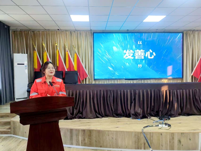 “父母呼,应勿缓;父母命,行勿懒……”“诵经典”环节中,全场职工在领诵人身后齐声诵读《弟子规·入则孝》,朗朗书声浸润心灵,将“孝”的种子悄然播撒。