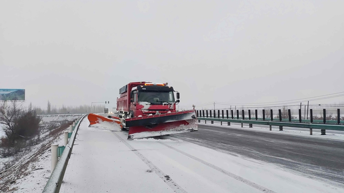 伊宁养护所坚持“以雪为令、闻令而动”,建立24小时应急值班备勤与路况巡查制度,实行“白+黑”不间断巡查模式,养护人员分组分路段开展动态巡查,重点监测路面结冰、积雪、障碍物等情况,通过沿线LED电子显示屏、微信工作群等渠道,实时发布路况信息、天气预警与安全出行提示,引导司乘人员合理规划路线。今日完成清理积雪9.51万立方米,更换刀片2付,抛洒融雪剂35.34吨。