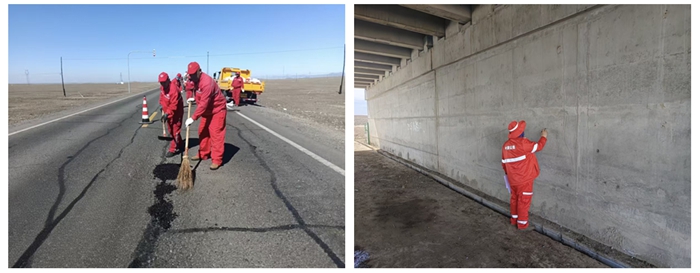 精准把脉摸底,夯实养护工作基础。春季是公路病害的“高发期”,也是处治病害的“黄金期”。富蕴养护所坚持“预防为主、防治结合”原则,组织28名技术骨干,对辖区国省干线公路、桥涵构造物及沿线附属设施开展“拉网式”路况普查。工作中严格遵循公路养护技术规范与评定标准,采取“徒步排查+实地检测+现场记录”相结合的方式,对路面平整度、路基稳固度、桥涵排水能力及交通安全设施完好度等进行逐路段、逐点位细致排查。目前,公路沿线路况普查已全面完成,桥涵专项普查正有序推进,为后续精准施策、科学养护提供了坚实的数据支撑。