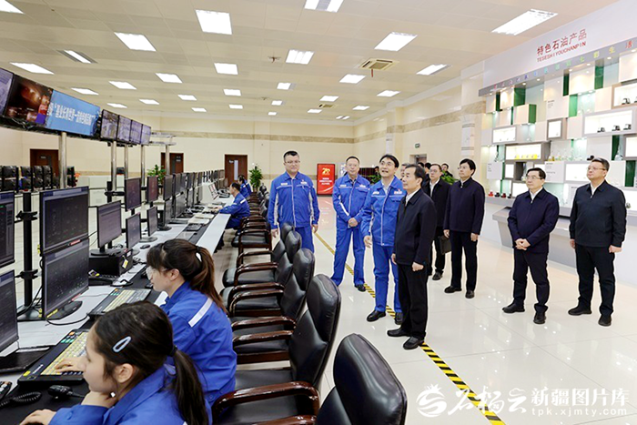 11月19日,自治区党委书记陈小江在中石油克拉玛依石化有限责任公司,详细了解原油炼化加工情况。石榴云/新疆日报记者 崔志坚摄