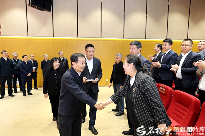 11月7日,自治区党委书记、兵团党委第一书记、第一政委陈小江在新疆日报社,看望慰问正在开展记者节活动的全区新闻工作者代表。石榴云/新疆日报记者 崔志坚摄