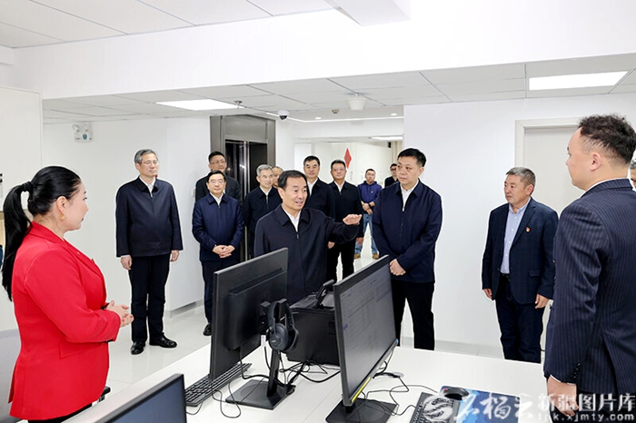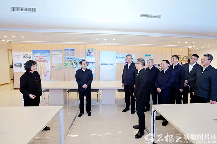 11月7日,自治区党委书记、兵团党委第一书记、第一政委陈小江在新疆日报社,察看新疆国际传播中心运营成效。石榴云/新疆日报记者 崔志坚摄