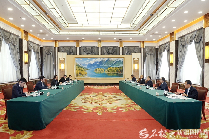 11月6日,自治区党委书记陈小江、自治区主席艾尔肯·吐尼亚孜在乌鲁木齐会见乌兹别克斯坦驻华大使阿尔济耶夫。石榴云/新疆日报记者 谢龙摄