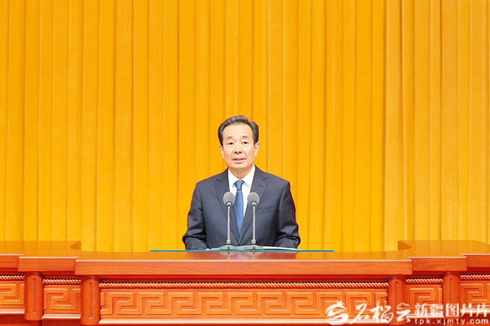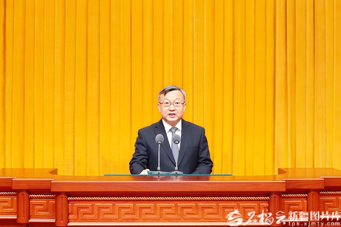 自治区党委副书记、自治区主席艾尔肯·吐尼亚孜主持。自治区人大常委会主任祖木热提·吾布力,自治区政协主席努尔兰·阿不都满金,自治区党委副书记、兵团政委何忠友,自治区党委副书记张柱出席。