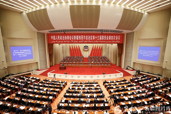 1月26日,中国人民政治协商会议新疆维吾尔自治区第十三届委员会第四次会议在新疆人民会堂开幕。石榴云/新疆日报记者 谢龙摄