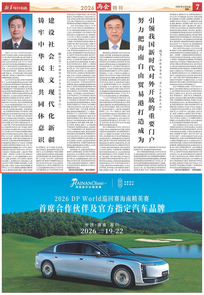 2026年是中国共产党成立105周年,是“十五五”开局之年。做好新疆各项工作,对于推动实现社会稳定和长治久安意义重大。我们将坚持以习近平新时代中国特色社会主义思想为指导,深入贯彻党的二十大和二十届历次全会精神,认真落实四中全会部署,贯彻落实习近平总书记关于新疆工作的重要讲话重要指示精神,深刻领悟“两个确立”的决定性意义,增强“四个意识”、坚定“四个自信”、做到“两个维护”,完整准确全面贯彻新时代党的治疆方略,牢牢扭住社会稳定和长治久安工作总目标,紧紧围绕铸牢中华民族共同体意识、推进中华民族共同体建设,锚定党中央赋予新疆的“五大战略定位”,统筹发展和安全,立足国家所需、新疆所能、群众所盼,推动经济社会高质量发展,使发展成果更多更好惠及民生、凝聚人心、增进团结。聚焦打造亚欧黄金通道和向西开放的桥头堡,进一步扩大高水平开放。高标准建设丝绸之路经济带核心区,高质量运行中欧(亚)班列,全面落实自贸试验区提升战略,优化口岸功能,积极稳妥扩大制度型开放,扩大同周边国家地区间的务实合作,推动新疆从“内陆边疆”向“开放枢纽”转变,为打造中国—中亚命运共同体作出新疆贡献。聚焦打造构建新发展格局的战略支点,实现自身高质量发展和服务双循环一体推进。加强与国内省区市的战略对接和发展协同,优化资源配置,积极融入全国统一大市场建设,打造内外协同的产业合作重要节点,扩大有效投资,激发消费潜能,链接国内国际双循环,推动新疆从“经济通道”向“循环协同”转变。聚焦打造全国能源资源的战略保障基地,加快建设特色优势现代化产业体系。加大新疆油气煤风光电资源开发力度,推动“油气+煤电+新能源+储能”一体化发展。坚持创新驱动,因地制宜发展绿色算力、“人工智能+”等新质生产力,让特色优势产业集群成势,推动新疆从“传统能源生产基地”向“新型能源保障基地”转变。聚焦打造全国优质农牧产品的重要供给基地,提升现代农牧业发展质效。坚持“稳粮、优棉、强果、兴畜、促特色、提质效、增收入”,扛牢粮食稳产保供重任,巩固棉花优势地位,实施林果业全产业链提质增效工程,推进畜牧业振兴行动,加快建设农业强区。聚焦打造维护国家地缘安全的战略屏障,推进国家安全体系和能力现代化。深入践行总体国家安全观,加强重点领域国家安全能力建设,筑牢反恐维稳人民防线,完善党政军警兵民合力强边固防机制,不断提升阻断极端思想渗透、塑造战略通道安全等能力,全力维护边疆稳固、边境安全、社会安定。