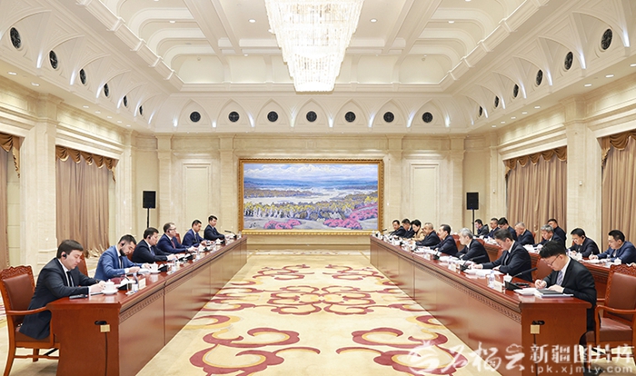 陈小江代表中共新疆维吾尔自治区委员会、自治区人民政府对沙卡利耶夫一行表示欢迎。他说,前不久中国全国两会胜利闭幕,会议批准的“十五五”规划纲要为中国未来五年发展擘画蓝图,为变乱交织的世界注入宝贵的确定性和稳定性。中哈是命运与共的好朋友、好伙伴,习近平主席和托卡耶夫总统的战略引领为两国关系发展指明了新方向,为双方地方间务实合作注入新动力。中共十八大以来,在习近平主席和中共中央坚强领导下,新疆完整准确全面贯彻新时代中国共产党的治疆方略,社会大局保持持续稳定,中华民族共同体意识深入人心,经济实力实现历史性跃升,基础设施日益完善,特色优势现代化产业体系加快构建,开放的大门越开越大,民生福祉不断增强,步入了发展最好、变化最大、各族群众得实惠最多的历史时期。深化与哈萨克斯坦地方间务实合作是中国新疆高水平对外开放的重要组成部分,双方在经贸、互联互通和人文交流等领域合作密切、成效显著。我们愿同哈方一道,共同推进口岸基础设施建设,持续提升双方地方间经贸合作水平,为构建更有内涵和活力的中哈命运共同体贡献力量。